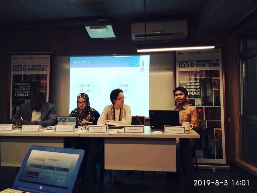 Saya sendiri mempresentasikan sebuah artikel yang berjudul: ‘How did early Muslim exegetes, living under the Umayyads and the early Abbasids who had restored an Islamic Unity -of a kind- understand the Quranic Ummah?’.
