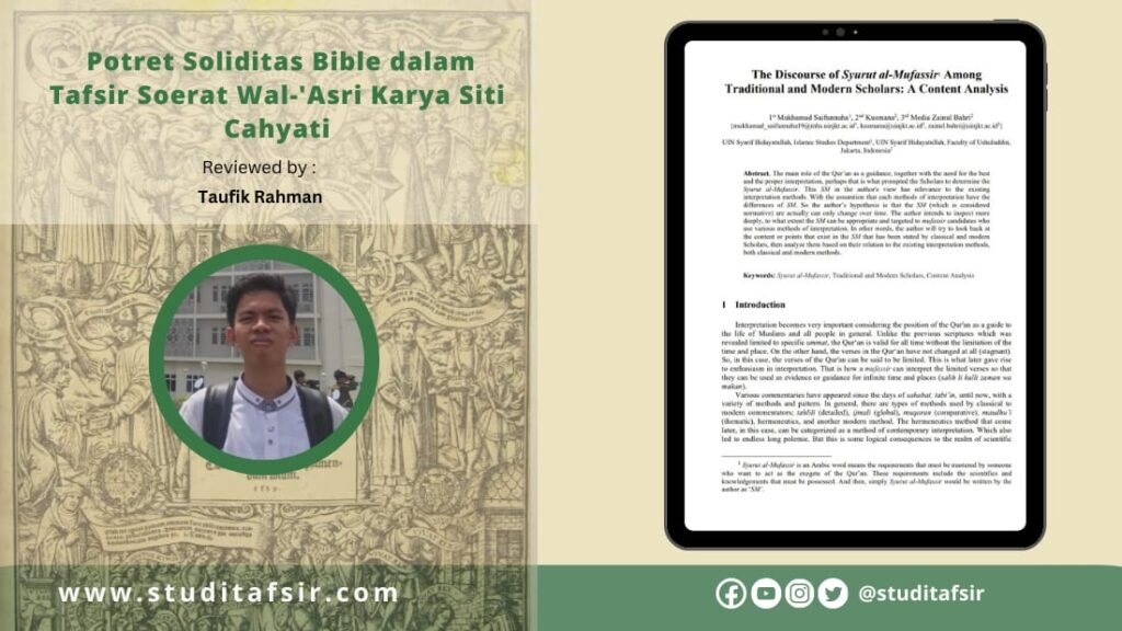 How to cite this Article: Taufik Rahman, “POTRET SOLIDITAS BIBLE DALAM TAFSIR SOERAT WAL-‘ASRI KARYA SITI CAHYATI”, studitafsir.com (blog), Juni 18, 2023 (+ URL dan tanggal akses)